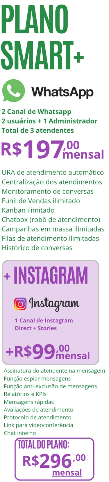 Listas de envio personalizáveis (etiqueta, status, demanda, atendente etc.)